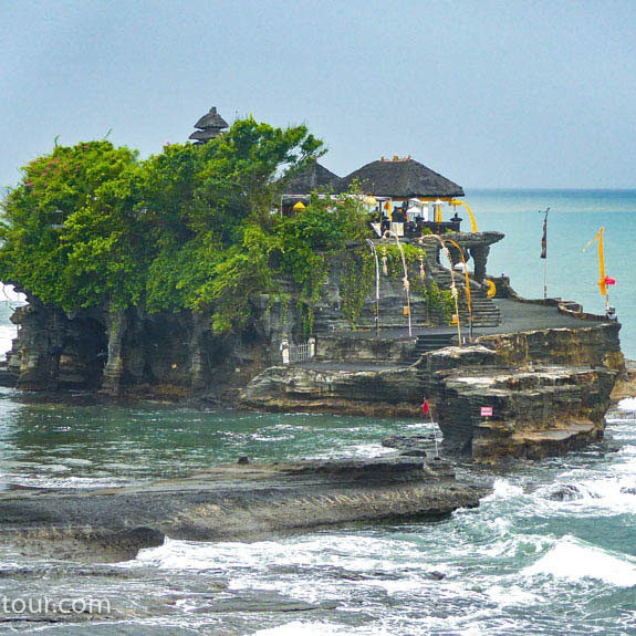 The last stop for the tour is at the Tanah Lot and Batu Bolong temples. Tanah Lot is one of Bali’s most famous temples. Although this place is bit crowd at sunset the view from the temple area is worth seeing. This 16th century temple is built on black lava rock 200 meters off shore. Tide permitting, you can walk across the beach to the temple.